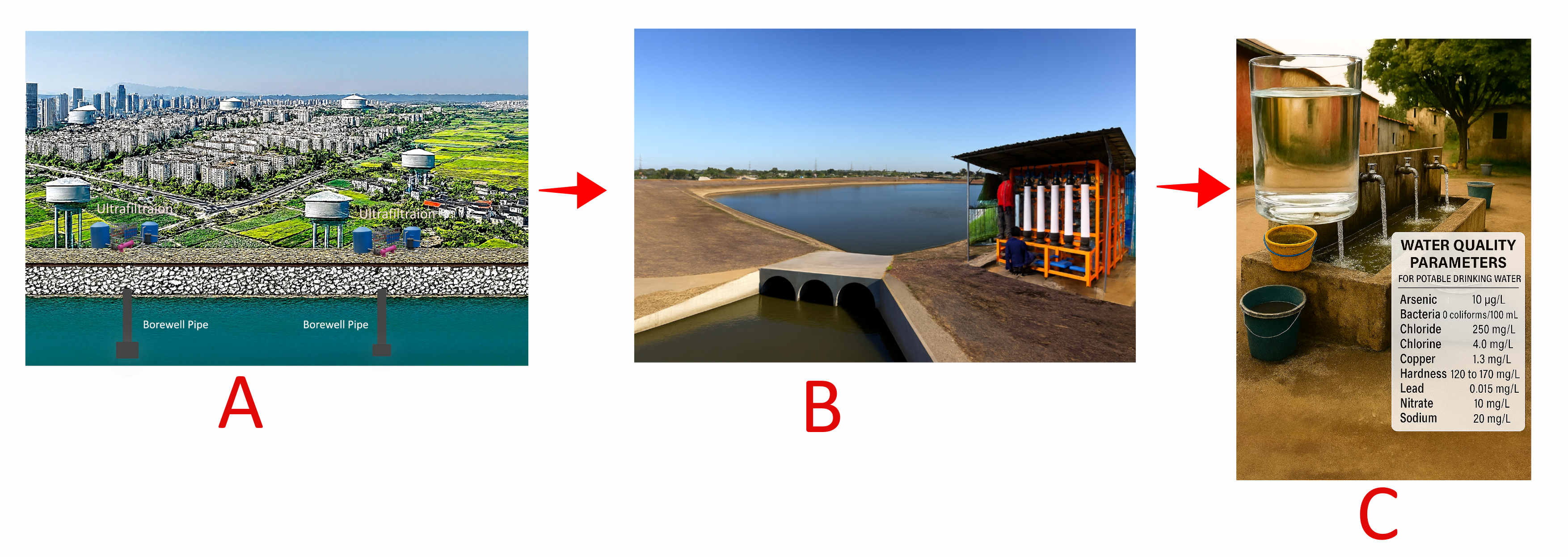 - The recovered groundwater is processed through an Ultrafiltration (UF) System.