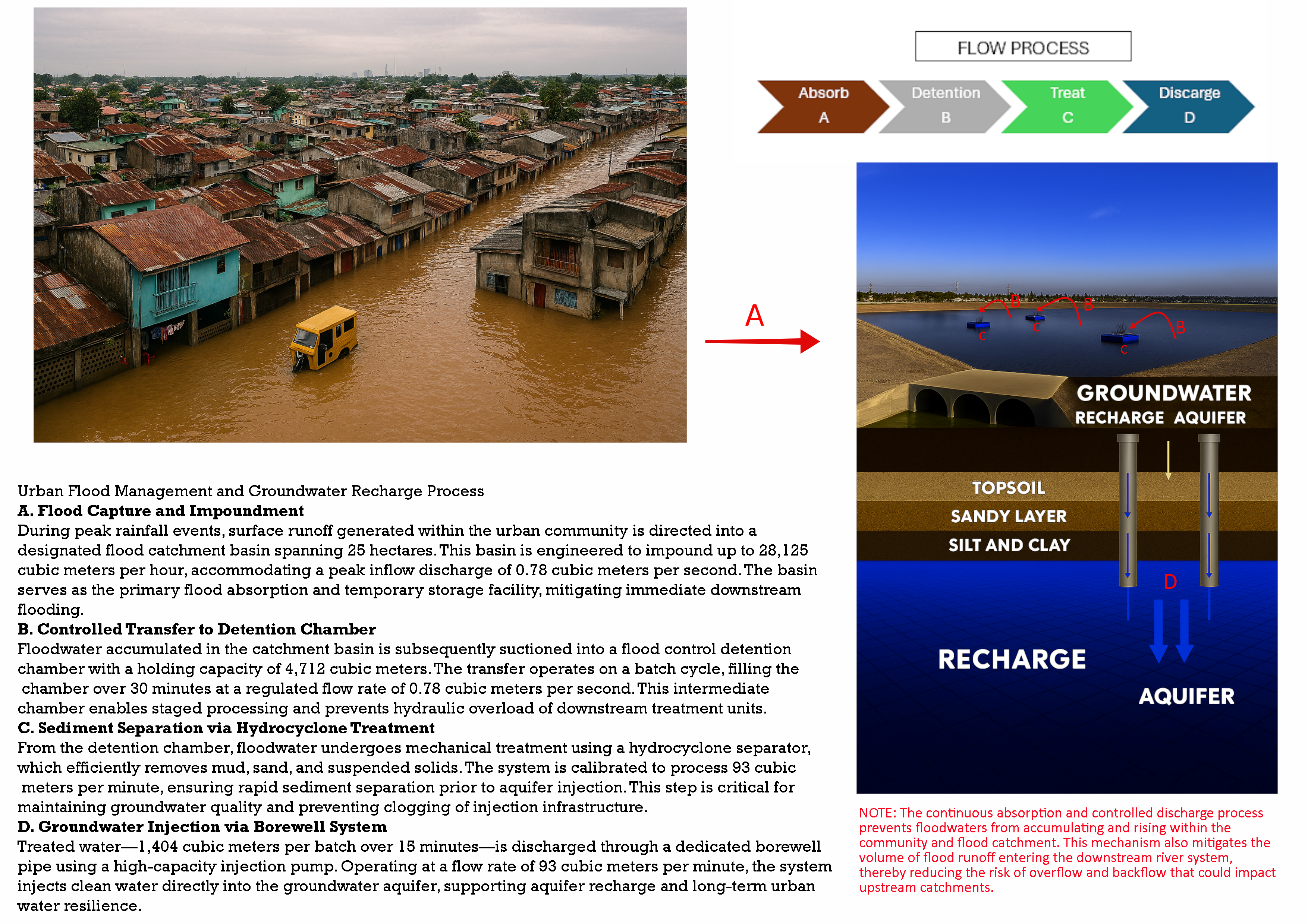 - Aligns with circular water use principles, turning flood risks into water assets.